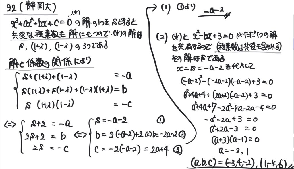 • 2次方程式の解と係数の関係は覚えているが、3次方程式は覚えていなかった